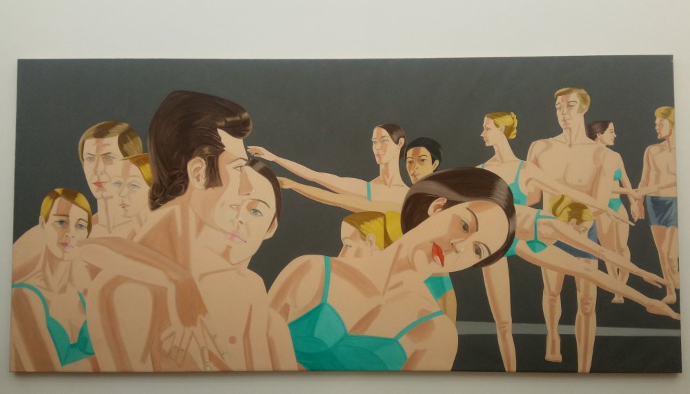 I always thought that the new, contemporary painting is about points, lines, colors, abstract figures, things which in appearance don’t say anything. This until I saw the exhibition of Alex Katz from Brandhorst museum. He doesn’t splash points or lines and colors on the painting. He paints people. Dancers. Beautiful women. His wife. Old women. People. His painting is another type of impressionism. And an absolute one. His faces are very clear. You can see every cone of the eye. The corner of the smile. You can feel the weight of the dancer’s body laying on another dancer. You can feel the blood flowing through their veins. Sometimes his paintings are looking like screenshots from a movie.