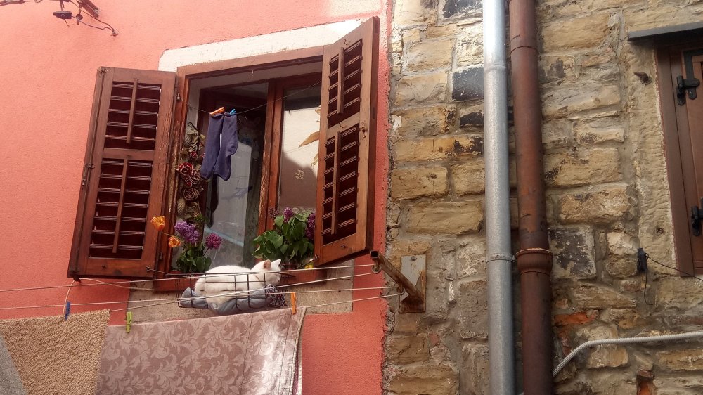 The narrow streets, the cats siting lazy on the window’s sill, the architecture, the Venetian smell of the streets (sometime) and the clothes hanging in the sun to dry, all of them remember me of Italy. And offer me that feeling of eternal holiday.